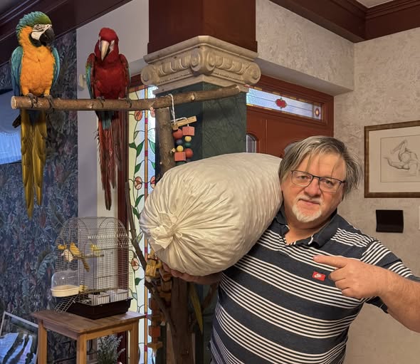 Tinácska a kék-sárga arapapagáj reggel udvariasan köszön Verácskának és a “👫Mi újság Dézsiéknél