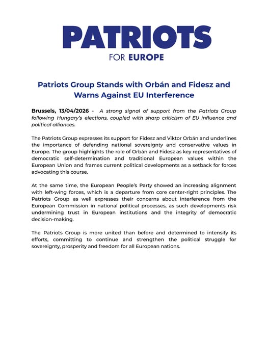 | The Patriots Group stands with Orbán and Fidesz and warns against EU interference.