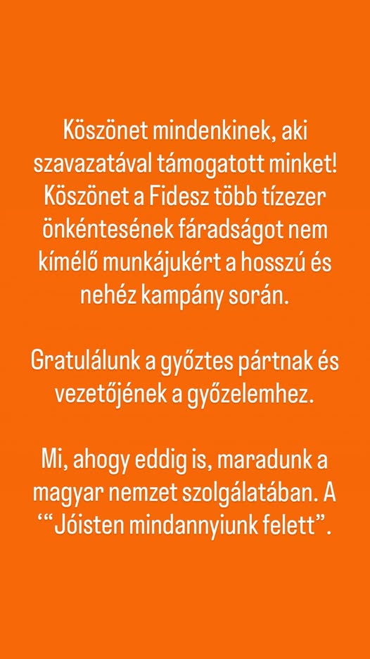 Nincs megállás. Mindenki hozzon el mindenkit. A hazádnak rád is szüksége van. Védjük meg Magyarország békéjét és biztonságát, és támogassuk a Fidesz-KDNP jelöltjeit és listáját. Most mi jövünk!