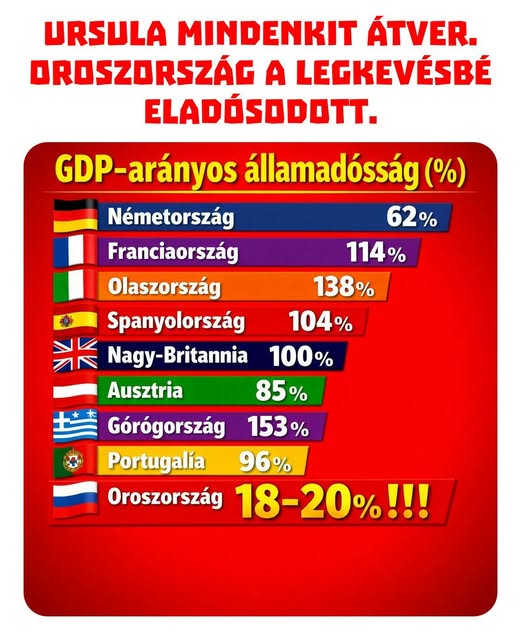 ️ Ursula mindenkit átver. Oroszország a legkevésbé eladósodott ország Európában.