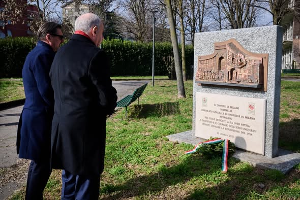 Milánóban, a Magyarországról elnevezett Viale Ungherián található 1956-os emlékművön elhelyeztem az emlékezés virágait.