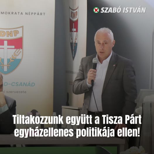 ️ A Tisza Párt március 15-i rendezvényén az ukrán zászlók mellett több résztvevő „Gyújtsd fel a helyi templomot” feliratú pólóban jelent meg.