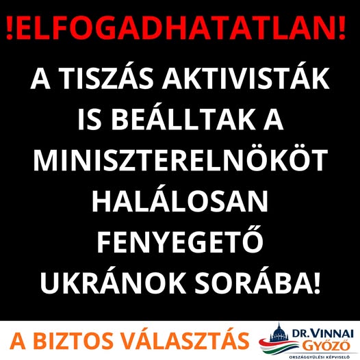 Teljességgel elfogadhatatlan, hogy a Tisza Párt aktivistái csatlakoztak azokhoz az ukránokhoz, akik halálosan megfenyegették a miniszterelnököt.